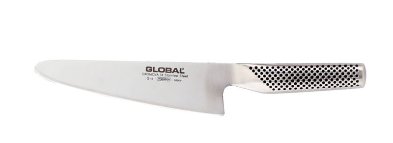 Het Global G6 koksmes is een handige allrounder in de keuken. Het lemmet kenmerkt zich door zijn afgeronde punt. Een mes om probleemloos diverse werkzaamheden in de keuken te volbrengen. Het lemmet is uit Cromova 18 staal…